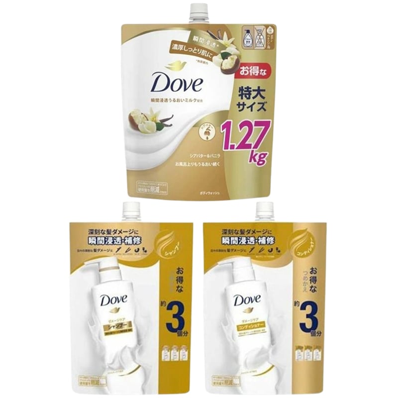 Dove(ダヴ) ボディウォッシュ ダメージケア シャンプー コンディショナー 3点セット 詰替え大容量 まとめ買い 保湿 潤い クリーミー泡 子どもにも使える LILYADORER0379