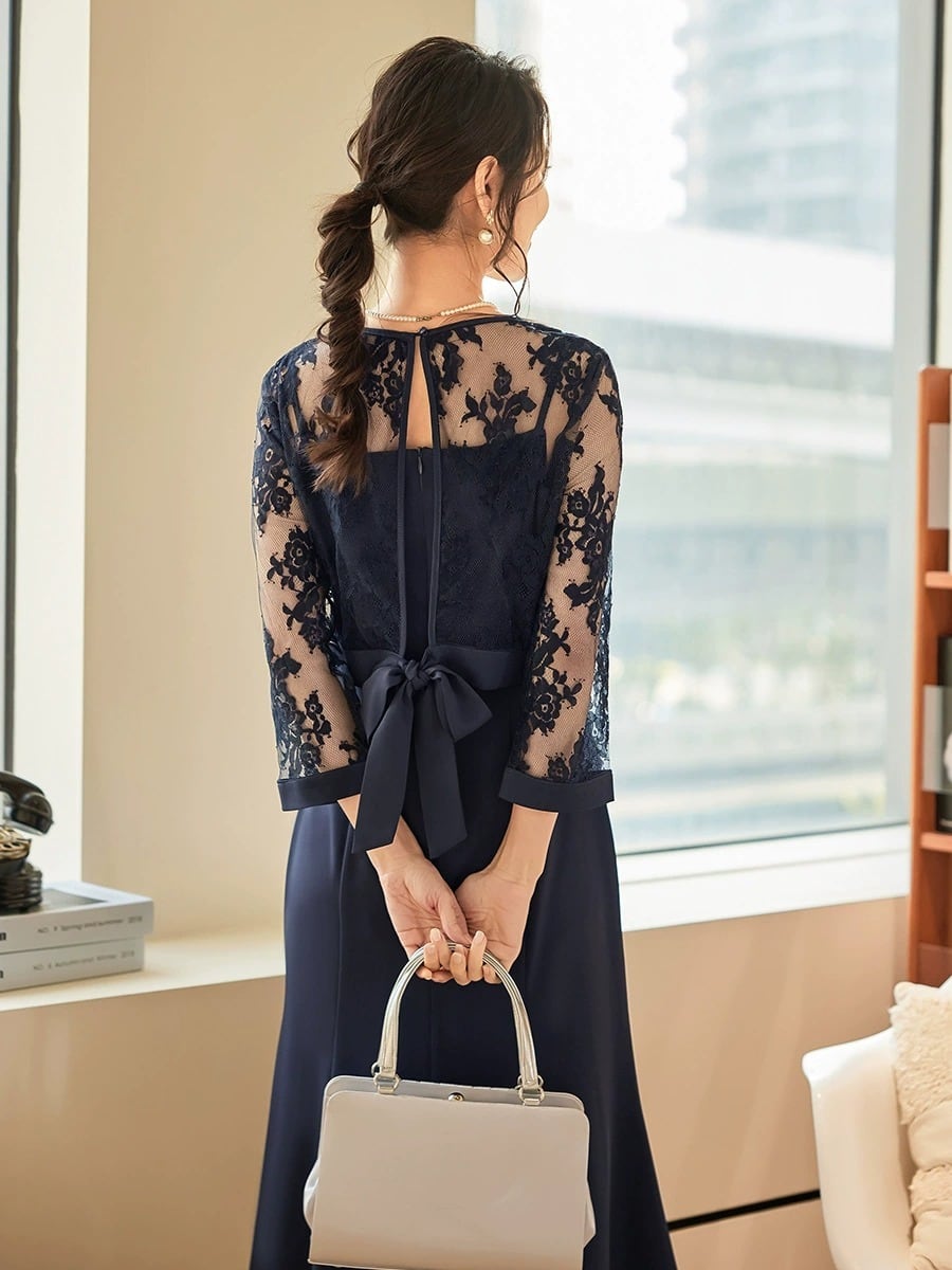 特別な日を彩るレーススリーブロングドレス