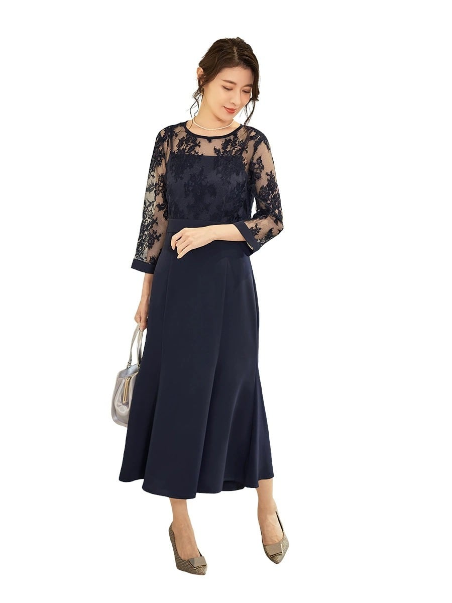 レーストップス: 大人上品な花柄の上半身レースがポイントです。デコルテ部分と腕の控えめな肌見せが華やかで女性らしさがアップ。適度な透け感がGOOD。