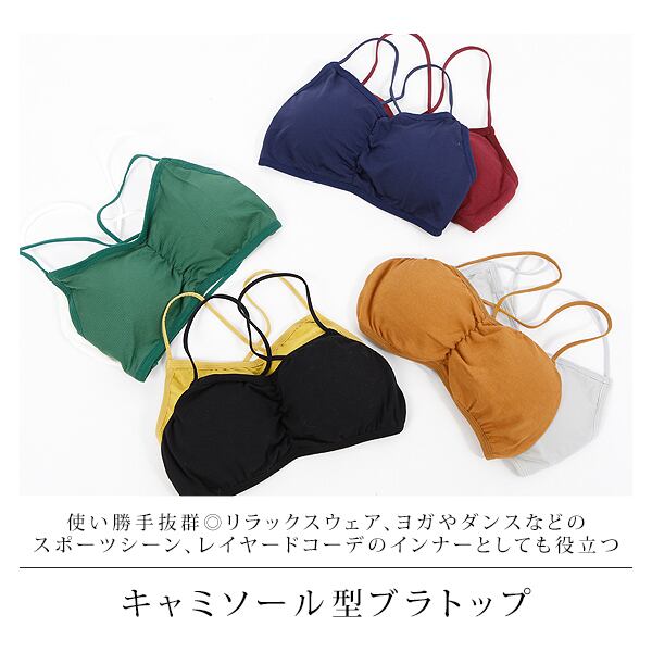 使い勝手抜群◎リラックスウェア、ヨガやダンスなどのスポーツシーン、レイヤードコーデのインナーとしても役立つキャミソール型ブラトップ。