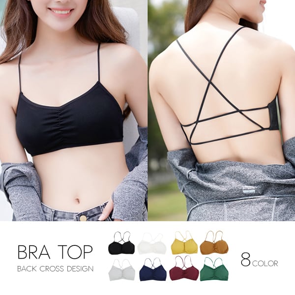 即日配送 送料無料 インナー カップ入りバッククロスデザインブラトップ 全8色 レディース インナー トップス 下着 ブラトップ ハーフトップ キャミソール スポーツブラ カップ付き ノンワイヤー アンダーウェア ヨガ スポーツ シンプル コットン 伸縮 LILYADORER リリーアドレ MER0065