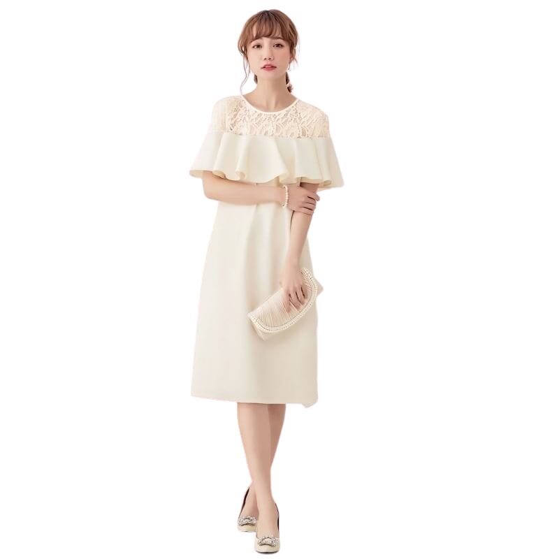 胸元のフレアとレースがとっても大人可愛いフェミニンなワンピースドレス